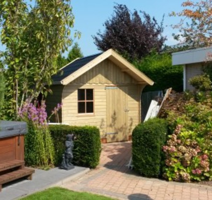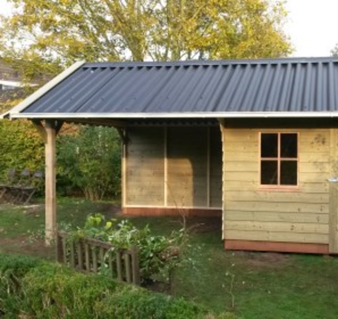U kunt uw tuinhuis uitbreiden met een overkapping voor uw tuinstoelen of lounge-set, zodat u er lekker onder kan zitten te genieten en u kunt de spullen laten staan.